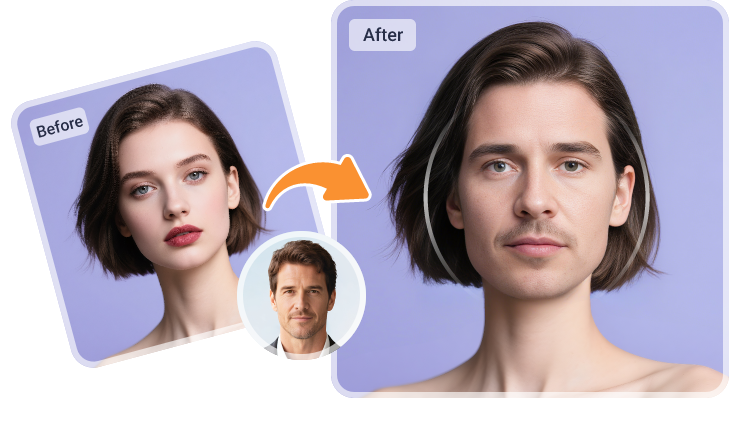 Changez de visage sur une photo ou dans une vidéo directement en ligne, en un rien de temps grâce à l'IA, sans inscription ni attente.