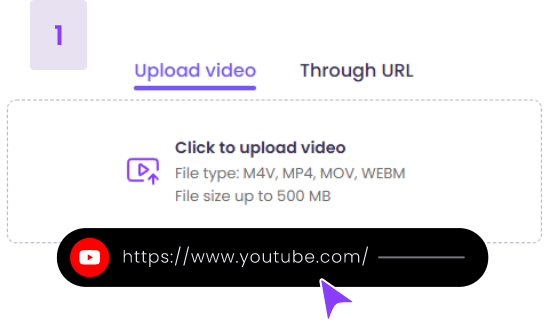 Commencez par télécharger une vidéo depuis votre appareil (formats pris en charge : MP4, M4V, MOV, WEBM) ou importez directement une vidéo en copiant son URL depuis YouTube.