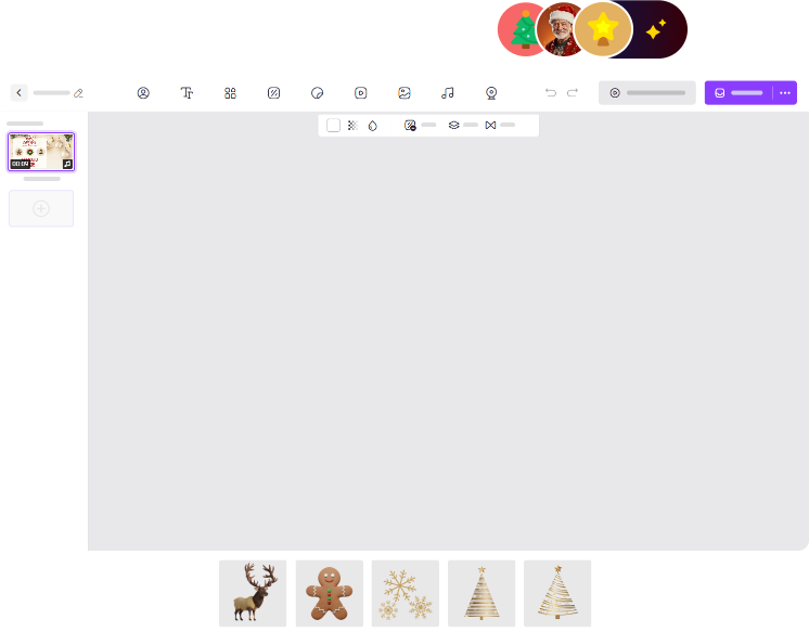 Découvrez notre sélection de modèles spécialement conçus pour des vidéos de Noël uniques ! Que ce soit pour des vidéos personnalisées du Père Noël pour vos enfants, ou pour transmettre vos vœux de fin d'année à vos clients et employés, Vidnoz vous accompagne pour faire briller vos fêtes et laisser un souvenir inoubliable !